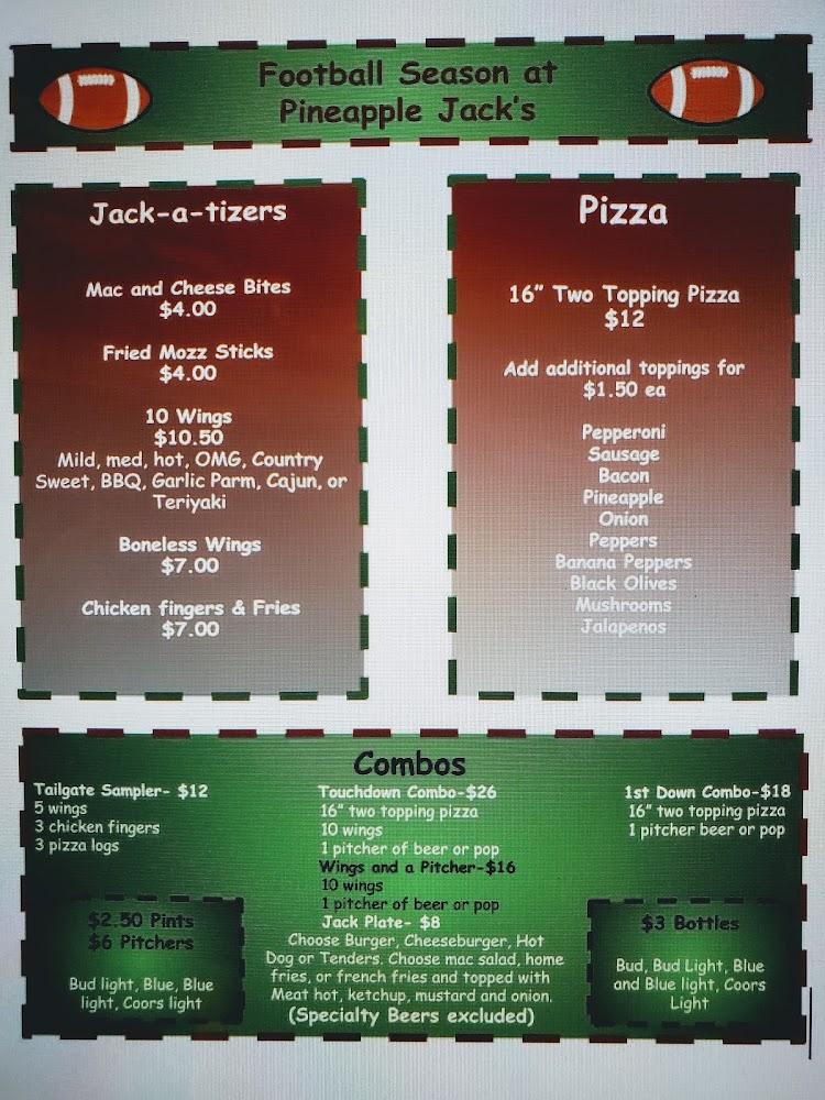 Welcome to Pineapple Jack's, Rochester's go-to spot for food, drinks, and fun! Whether you're looking to catch the game at the bar, enjoy a family dinner in our spacious dining area, or celebrate a special occasion in one of our private party rooms, we have something for everyone. With pool tables, darts, and multiple big screens, you'll always find excitement here! Don’t miss our weekend live music featuring local and traveling bands. Join us for excellent cocktails, a wide selection of beers, and traditional comfort food—all in a welcoming atmosphere. Come see what the buzz is all about!